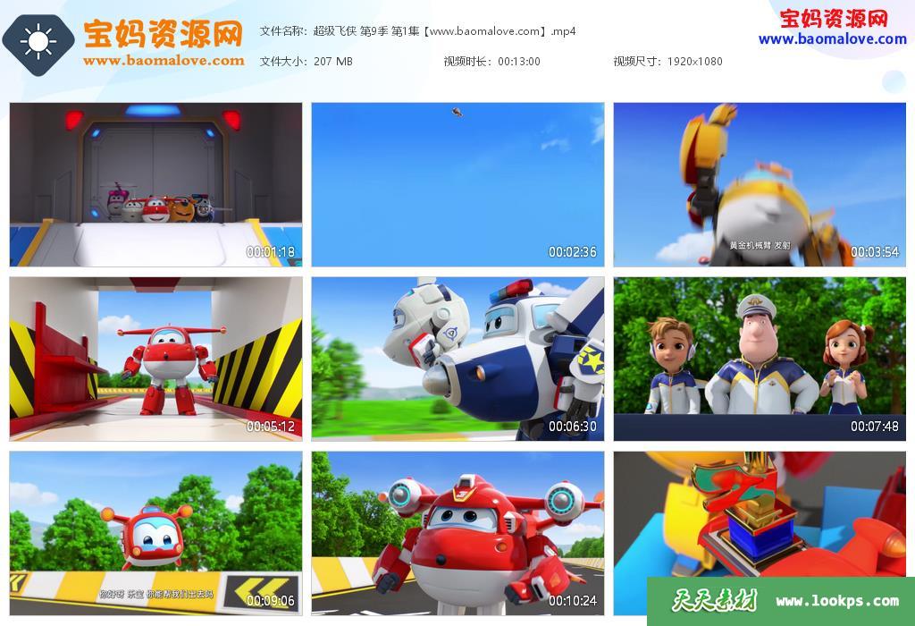 天天资源网收录的动画片《超级飞侠》Super wings中文版 第九季 全部20集,国语发音,中文字幕;每集大小约190M,总大小3.84G,单集播放时长约13分钟,1080P高清MP4格式,可以在电视机或电脑、平板、IPAD、早教机、手机等各种设备播放,提供百度云网盘下载。