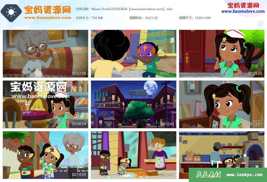 天天资源网收录的动画片《Nina’s World》妮娜的世界英文版 第一季 全部53集,英语发音,内置英文字幕(可以下载后使用播放器设置字幕字体大小颜色或者切换关闭字幕);每集大小约360M,资源总大小19.8G,单集播放时长约12分钟,1080P高清MKV格式,可以在电视机或电脑、平板、IPAD、早教机、手机等各种设备播放,提供百度网盘下载。