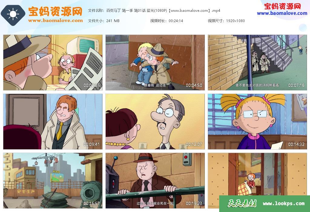 天天资源网收录的动画片《百变马丁》Martin Morning中文版 第一季全部52集,国语发音,中文字幕;每集大小约255M,总大小12.6G,单集播放时长约24分钟,1080P高清MP4格式,可以在电视机或电脑、平板、IPAD、早教机、手机等各种设备播放,提供百度云网盘下载。