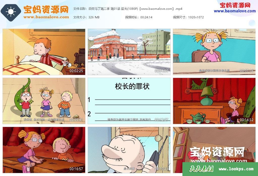 天天资源网收录的动画片《百变马丁》Martin Morning中文版 第二季全部26集,国语发音,中文字幕;每集大小约240M,总大小7.86G,单集播放时长约24分钟,1080P高清MP4格式,可以在电视机或电脑、平板、IPAD、早教机、手机等各种设备播放,提供百度云网盘下载。