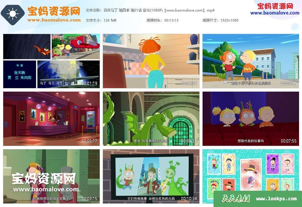 天天资源网收录的动画片《百变马丁》Martin Morning中文版 第四季全部26集,国语发音,中文字幕;每集大小约140M,总大小3.38G,单集播放时长约14分钟,1080P高清MP4格式,可以在电视机或电脑、平板、IPAD、早教机、手机等各种设备播放,提供百度云网盘下载。