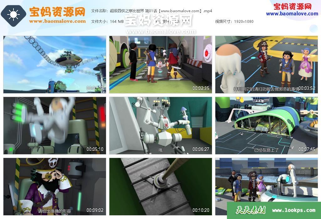 天天资源网收录的动画片《超级四侠之摩比世界》Super 4 Playmobil中文版 全部52集,国语发音,中文字幕;每集大小约145M,总大小7.59G,单集播放时长约13分钟,1080P高清MP4格式,可以在电视机或电脑、平板、IPAD、早教机、手机等各种设备播放,提供百度云网盘下载。