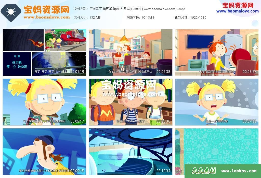 天天资源网收录的动画片《百变马丁》Martin Morning中文版 第五季全部26集,国语发音,中文字幕;每集大小约130M,总大小3.2G,单集播放时长约13分钟,1080P高清MP4格式,可以在电视机或电脑、平板、IPAD、早教机、手机等各种设备播放,提供百度云网盘下载。