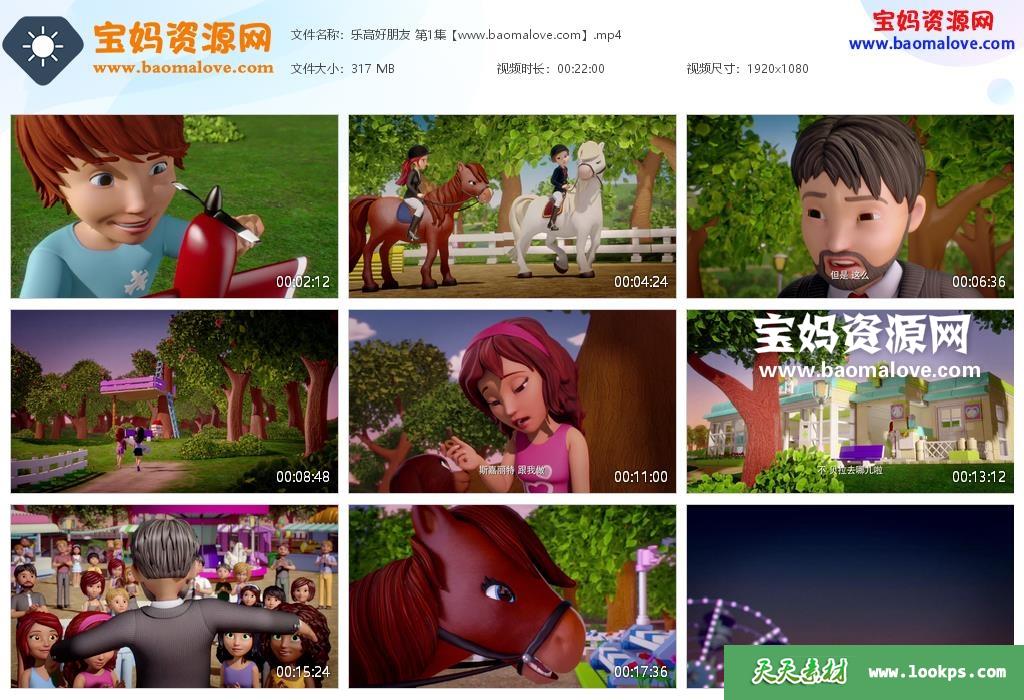 天天资源网收录的动画片《乐高好朋友》LEGO Friends中文版 第一季 全部20集,国语发音,中文字幕;每集大小约220M,总大小4.93G,单集播放时长约22分钟,1080P高清MP4格式,可以在电视机或电脑、平板、IPAD、早教机、手机等各种设备播放,提供百度云网盘下载。
