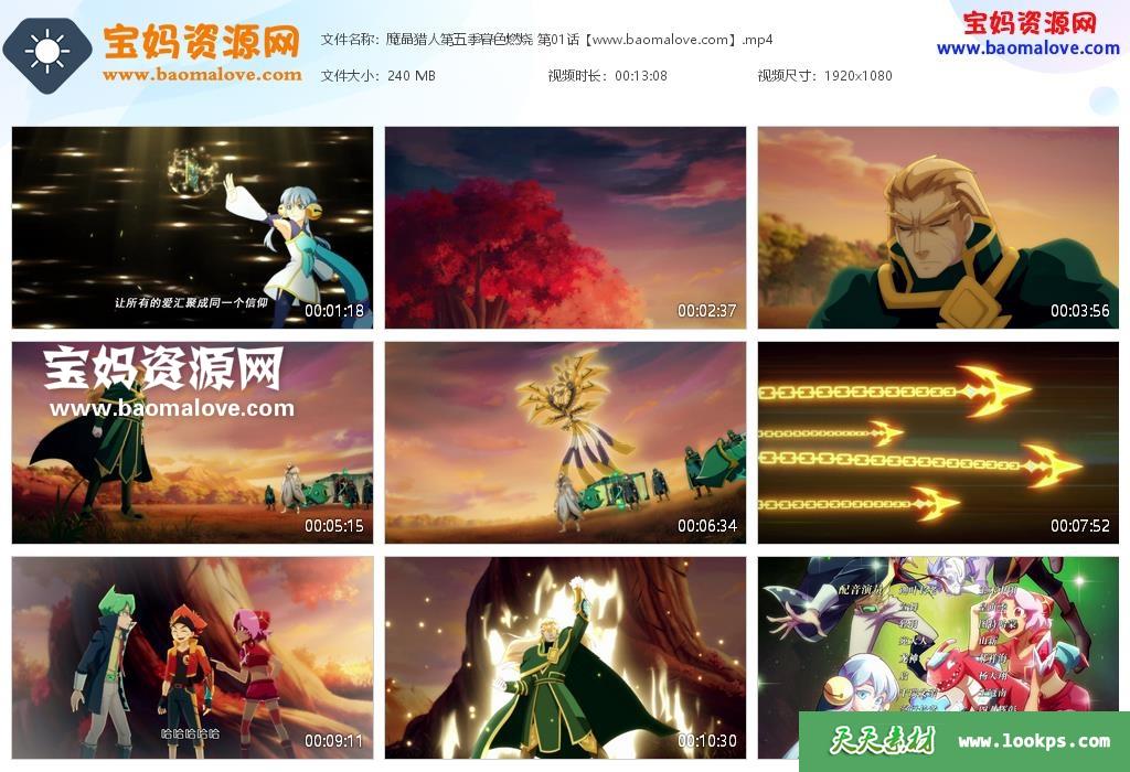 天天资源网收录的动画片《魔晶猎人第五季暮色燃烧》 全部26集,国语发音,中文字幕;每集大小约239M,总大小5.88G,单集播放时长约13分钟,1080P高清MP4格式,可以在电视机或电脑、平板、IPAD、早教机、手机等各种设备播放,提供百度云网盘下载。