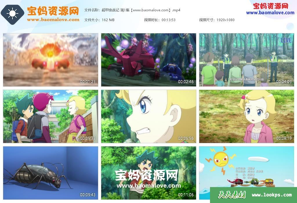 天天资源网收录的动画片《超甲虫战记 圣域传说》 全部26集,国语发音,中文字幕;每集大小约160M,总大小4.23G,单集播放时长约14分钟,1080P高清MP4格式,可以在电视机或电脑、平板、IPAD、早教机、手机等各种设备播放,提供百度云网盘下载。
