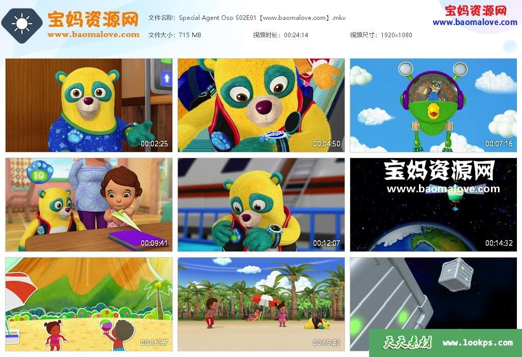 天天资源网收录的动画片《Special Agent Oso》特务欧宝英文版 第二季 全部69集,英语发音,内置英文字幕(可以下载后使用播放器设置字幕字体大小颜色或者切换关闭字幕);每集大小约360M,资源总大小29.6G,单集播放时长约12分钟,1080P高清MKV格式,可以在电视机或电脑、平板、IPAD、早教机、手机等各种设备播放,提供百度网盘下载。