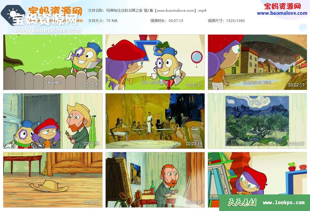 天天资源网收录的动画片《玛蒂与达达的名画之旅》Art With Mati And Dada中文版 全部39集,国语发音,中文字幕;每集大小约70M,总大小3.38G,单集播放时长约7分钟,1080P高清MP4格式,可以在电视机或电脑、平板、IPAD、早教机、手机等各种设备播放,提供百度云网盘下载。