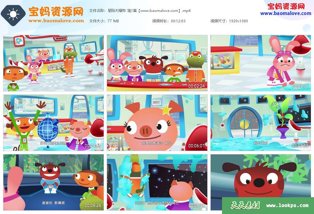 天天资源网收录的动画片《星际大爆炸》Astroblast中文版 全部52集,国语发音,中文字幕;每集大小约76M,总大小4.11G,单集播放时长约12分钟,1080P高清MP4格式,可以在电视机或电脑、平板、IPAD、早教机、手机等各种设备播放,提供百度云网盘下载。