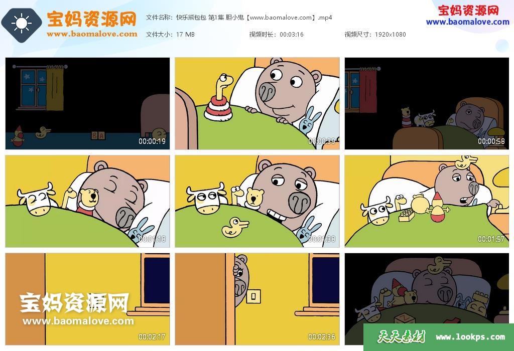 天天资源网收录的动画片《快乐熊包包》Boris中文版 全部52集,国语发音,无字幕;每集大小约20M,总大小1.17G,单集播放时长约3分钟,1080P高清MP4格式,可以在电视机或电脑、平板、IPAD、早教机、手机等各种设备播放,提供百度云网盘下载。