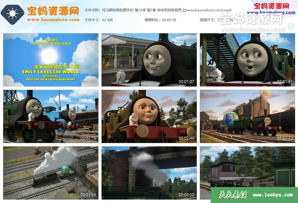 天天资源网收录的动画片《托马斯和他的朋友们》Thomas and his friends中文版 第19季,全部52集,国语发音,无字幕;每集大小约65M,总大小3.3G,单集播放时长约5分钟,1080P高清MP4格式,可以在电视机或电脑、平板、IPAD、早教机、手机等各种设备播放,提供百度云网盘下载。