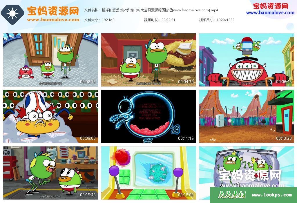 天天资源网收录的动画片《摇摇和丢丢》Breadwinners中文版 第二季 全部20集,国语发音,中文字幕;每集大小约190M,总大小3.74G,单集播放时长约22分钟,1080P高清MP4格式,可以在电视机或电脑、平板、IPAD、早教机、手机等各种设备播放,提供百度云网盘下载。