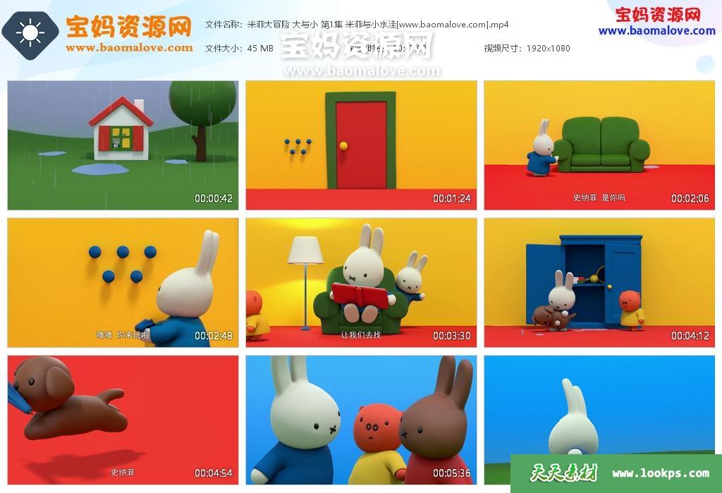 天天资源网收录的动画片《米菲大冒险 大与小》Miffy’s Adventures Big and Small中文版 全部52集,国语发音,中文字幕;每集大小约45M,总大小2.46G,单集播放时长约7分钟,1080P高清MP4格式,可以在电视机或电脑、平板、IPAD、早教机、手机等各种设备播放,提供百度云网盘下载。