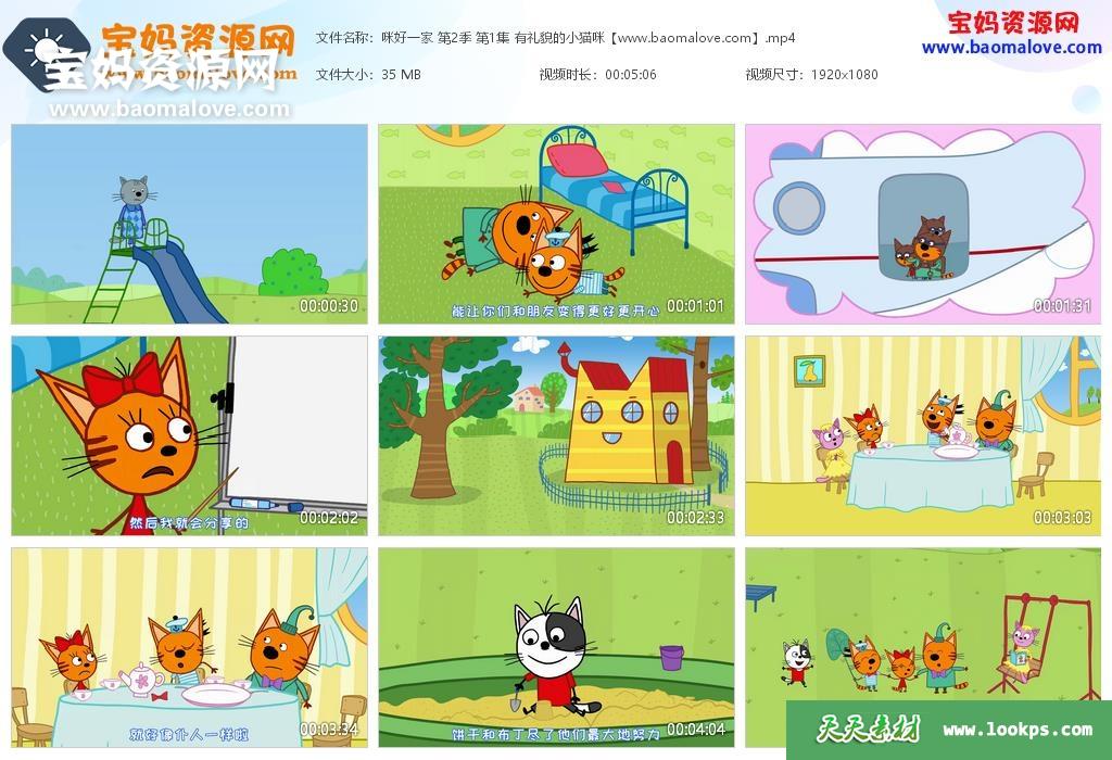 天天资源网收录的动画片《咪好一家》Kid-E-Cats中文版 第二季 全部52集,国语发音,中文字幕;每集大小约35M,总大小1.8G,单集播放时长约5分钟,1080P高清MP4格式,可以在电视机或电脑、平板、IPAD、早教机、手机等各种设备播放,提供百度云网盘下载。