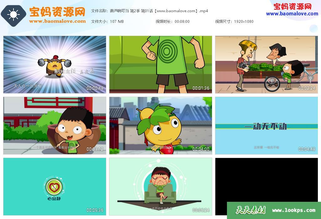 天天资源网收录的动画片《葫芦响叮当》第二季 全部26集,国语发音,中文字幕;每集大小约95M,总大小2.43G,单集播放时长约8分钟,1080P高清MP4格式,可以在电视机或电脑、平板、IPAD、早教机、手机等各种设备播放,提供百度云网盘下载。
