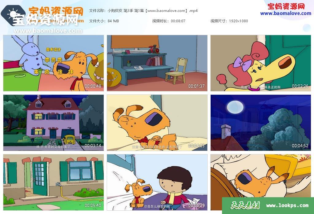 天天资源网收录的动画片《小狗皮皮》第一二三季,其中第1季、第2季分别为13集,第3季为39集,全部65集,国语发音,中文字幕;每集大小约100M,总大小6.69G,单集播放时长约8分钟,1080P高清MP4格式,可以在电视机或电脑、平板、IPAD、早教机、手机等各种设备播放,提供百度云网盘下载。