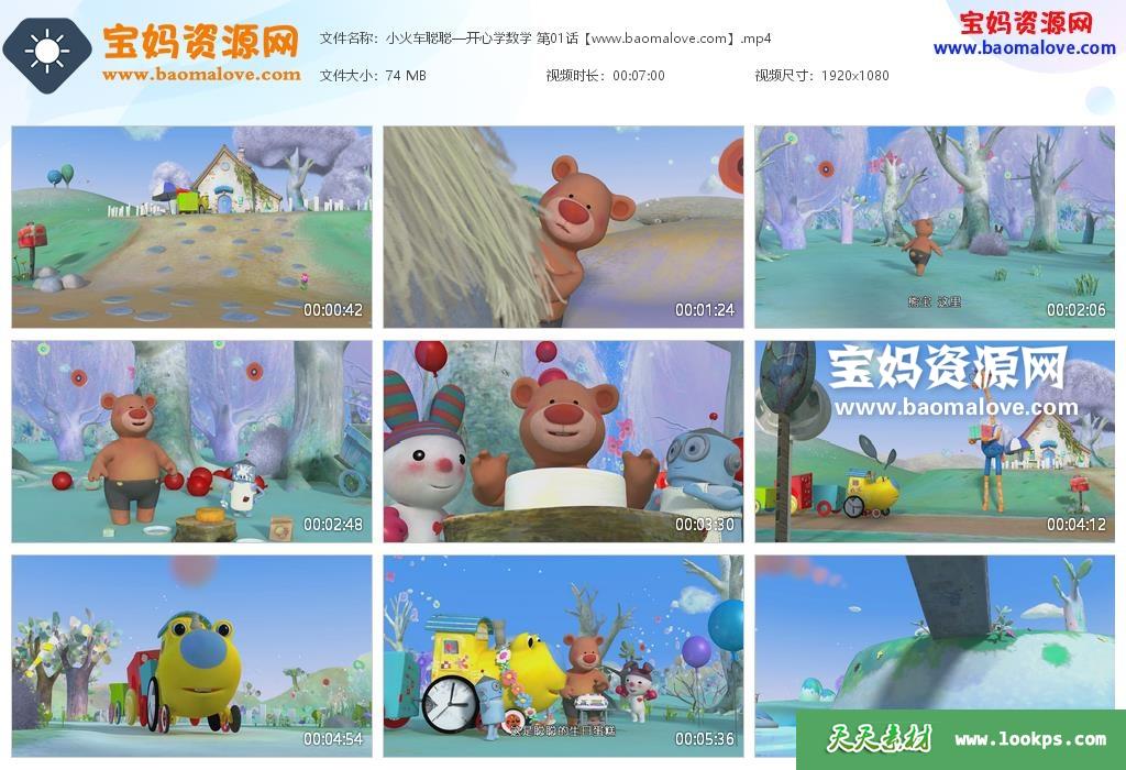 天天资源网收录的动画片《小火车聪聪—开心学数学》 全部26集,国语发音,中文字幕;每集大小约65M,总大小1.51G,单集播放时长约7分钟,1080P高清MP4格式,可以在电视机或电脑、平板、IPAD、早教机、手机等各种设备播放,提供百度云网盘下载。
