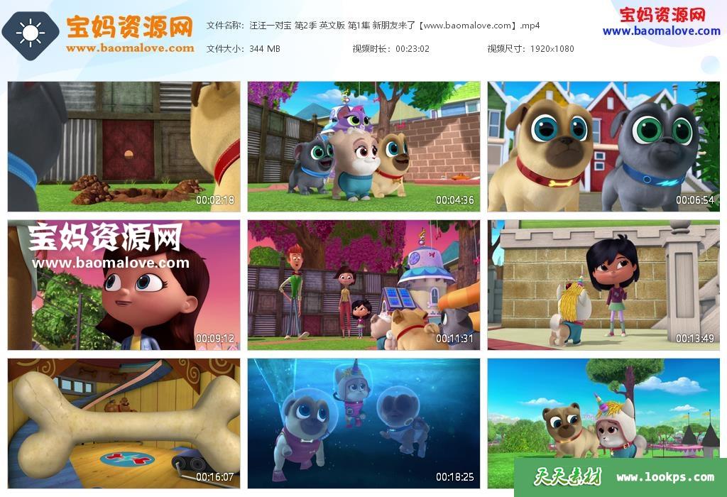 天天资源网收录的动画片《Puppy Dog Pals》汪汪一对宝英文版 第二季 全部30集,英语发音,无字幕;每集大小约350M,总大小11.4G,单集播放时长约23分钟,1080P高清MP4格式,可以在电视机或电脑、平板、IPAD、早教机、手机等各种设备播放,提供百度云网盘下载。