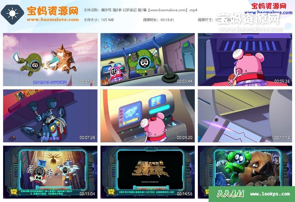 天天资源网收录的动画片《赛尔号》第八季 幻梦战记 全部30集,国语发音,中文字幕;H265编码,每集大小约150M,总大小4.62G,单集播放时长约15分钟,1080P高清MP4格式,可以在电视机或电脑、平板、IPAD、早教机、手机等各种设备播放,提供百度云网盘下载。