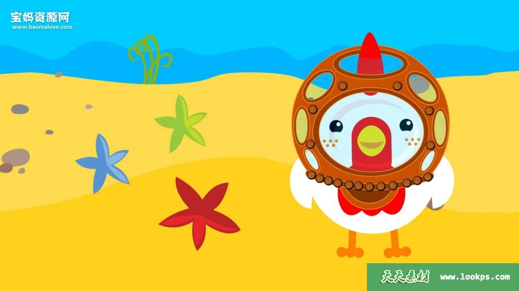第二部分的故事讲述的是鹰嘴小鸡和朋友们发生的故事,就像是一本自动翻页自动发声的绘本书。里面会穿插一些早教内容,比如教孩子认识颜色,数数字,一个星期里有几天,海底动物都有哪些以及他们的形状等等。例如介绍八爪鱼的时候,以连线的方式引导孩子了解八爪鱼的外观。