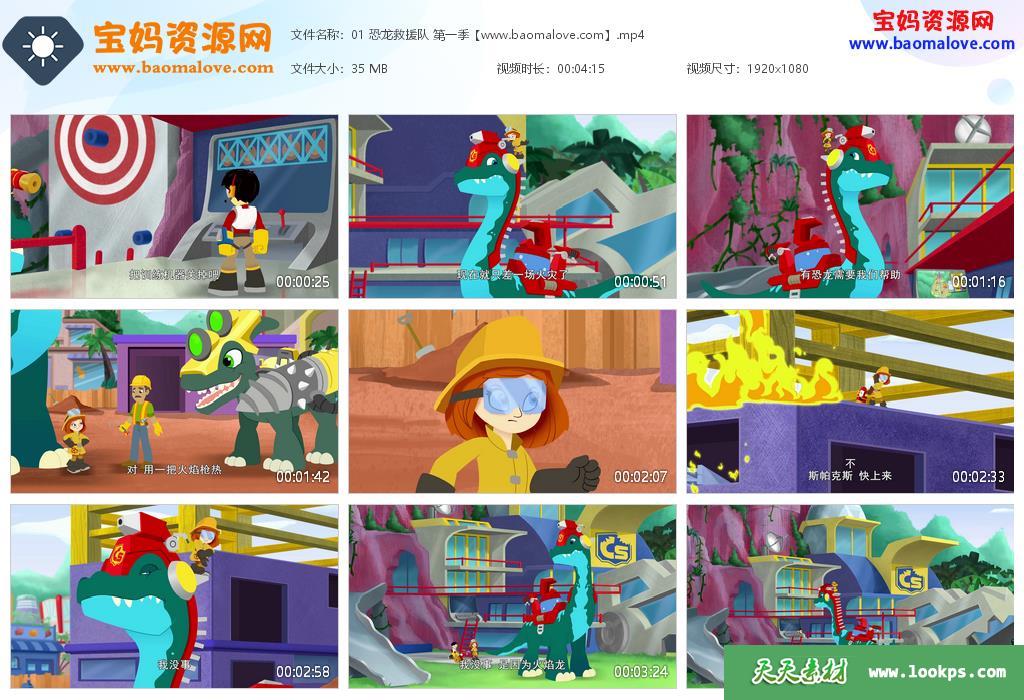天天资源网收录的动画片《恐龙救援队》Chomp Squad中文版第一季,全部25集,国语发音,中文字幕;每集大小约40M,总大小1.15G,单集播放时长约4分钟,1080P高清MP4格式,可以在电视机或电脑、平板、IPAD、早教机、手机等各种设备播放,提供百度网盘下载。