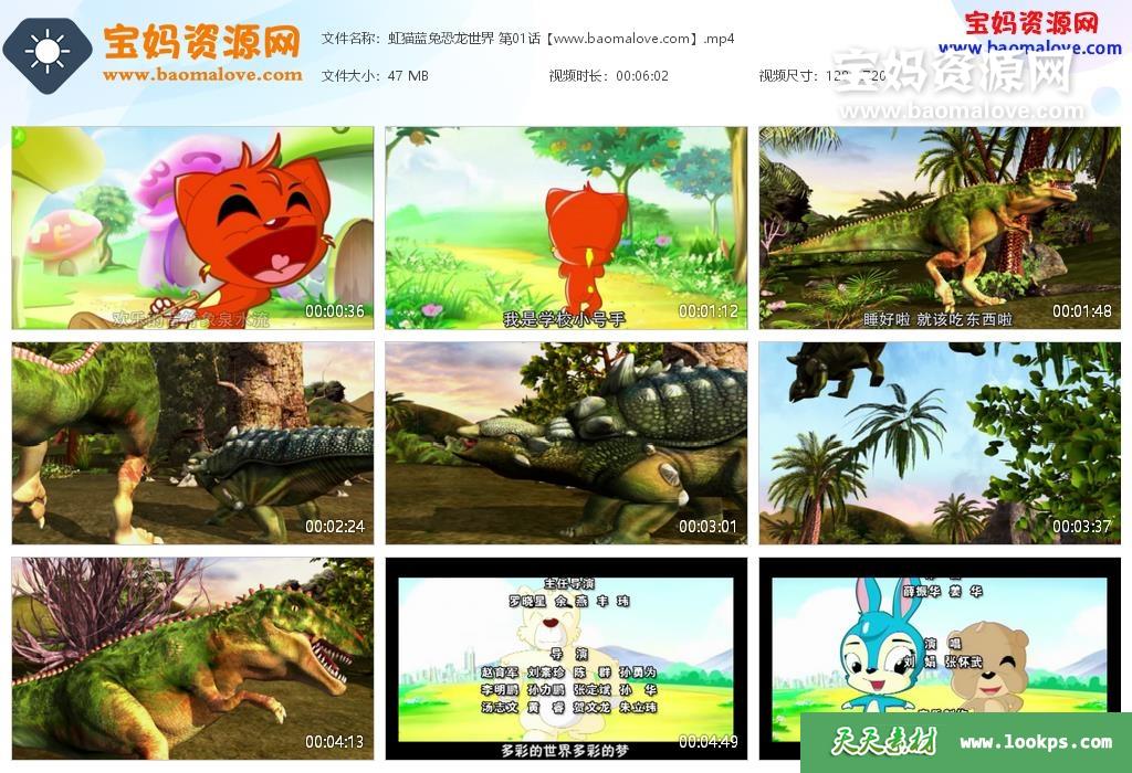 天天资源网收录的动画片《虹猫蓝兔恐龙世界》,全部90集,国语发音,中文字幕;每集大小约45M,总大小4.13G,单集播放时长约6分钟,720P高清MP4格式,可以在电视机或电脑、平板、IPAD、早教机、手机等各种设备播放,提供百度网盘下载。