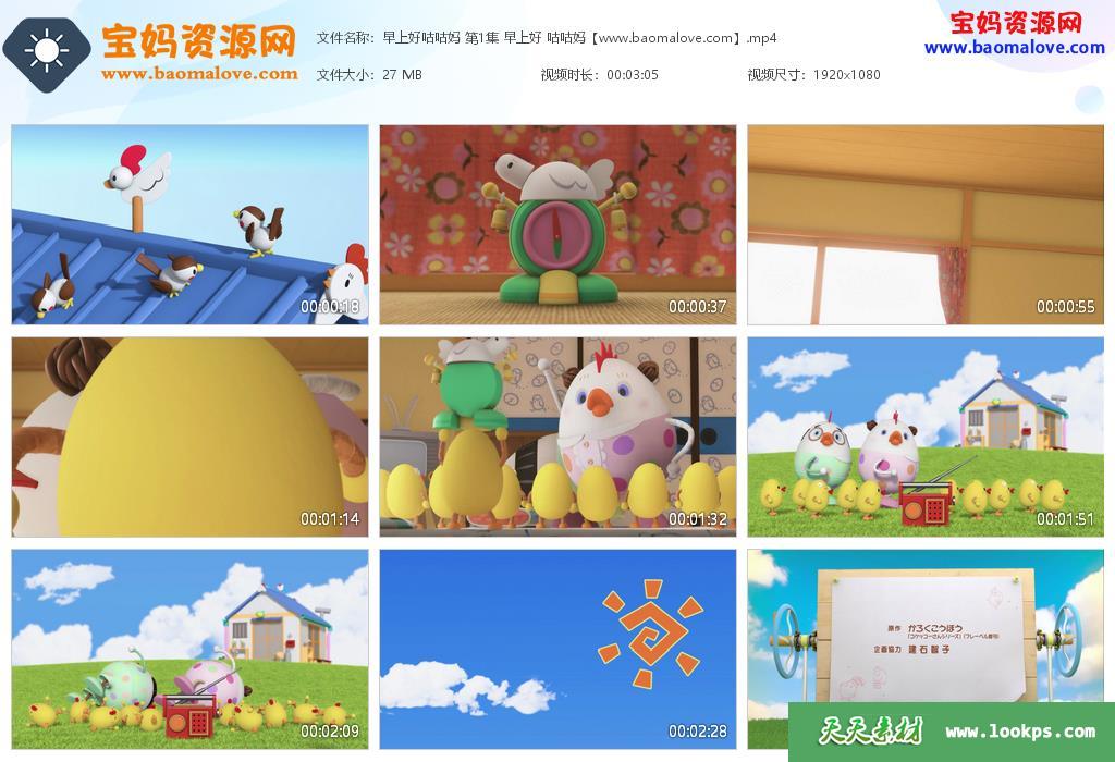 天天资源网收录的动画片《早上好咕咕妈》Poppy Cat 中文版,全部50集,国语发音,无字幕;每集大小约25M,总大小1.33G,单集播放时长约3分钟,1080P高清MP4格式,可以在电视机或电脑、平板、IPAD、早教机、手机等各种设备播放,提供百度网盘下载。