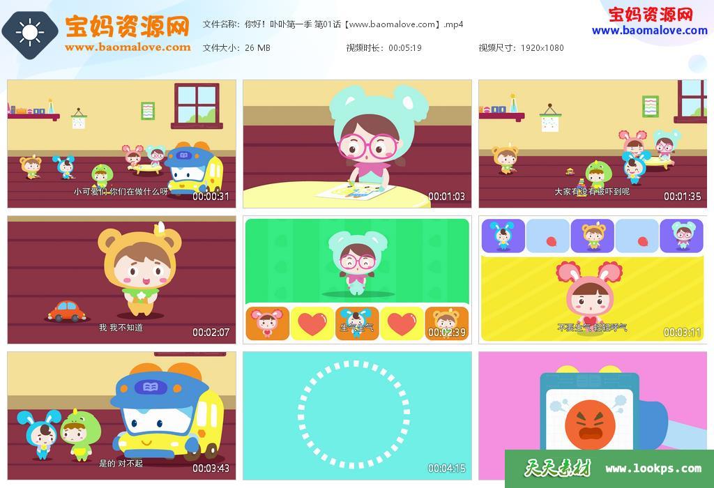 天天资源网收录的动画片《你好!卟卟》第一季,全部26集,国语发音,中文字幕;每集大小约26M,总大小685M,单集播放时长约5分钟,1080P高清MP4格式,可以在电视机或电脑、平板、IPAD、早教机、手机等各种设备播放,提供百度网盘下载。