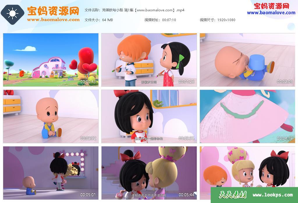 天天资源网收录的动画片《克蕾欧与小酷》Cleo & Cuquin中文版,全部78集,国语发音,中文字幕;每集大小约65M,总大小4.51G,单集播放时长约7分钟,1080P高清MP4格式,可以在电视机或电脑、平板、IPAD、早教机、手机等各种设备播放,提供百度网盘下载。