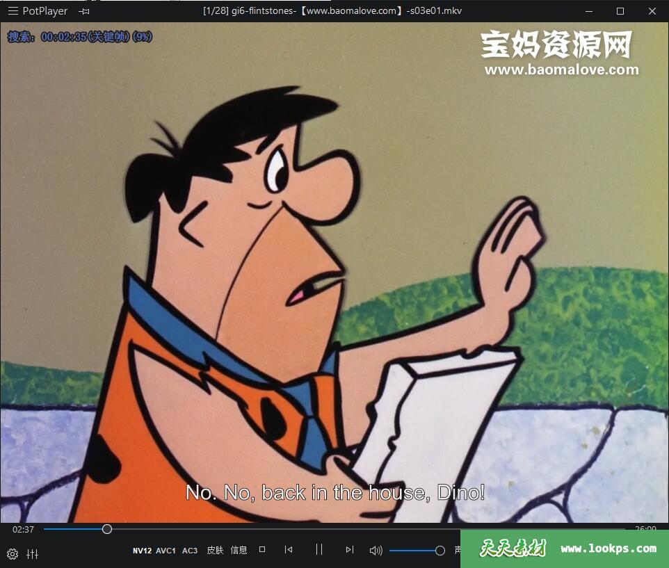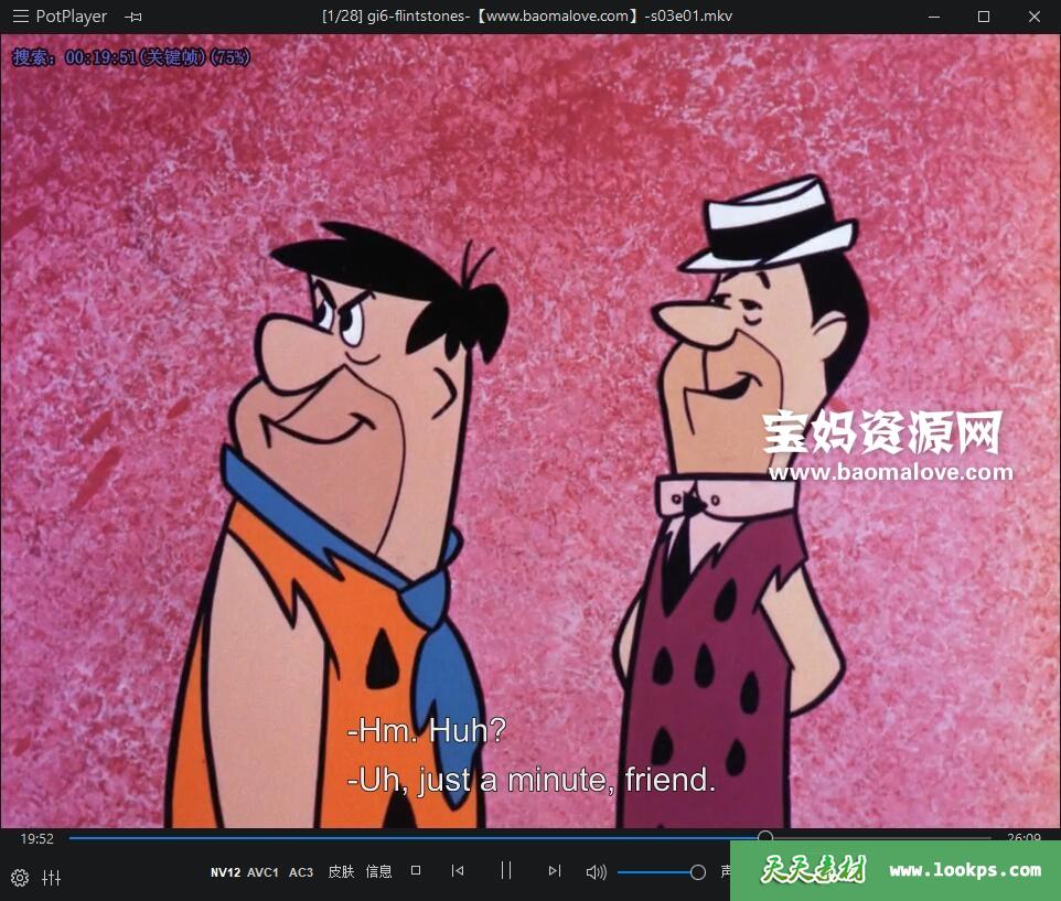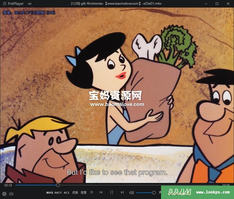 天天资源网收录的动画片《The Flintstones》摩登原始人英文版 第三季 全部28集,英语发音,内置英文字幕(内置多国语言字幕,如法文,荷兰文,西班牙文等,可以下载后使用播放器设置字幕字体大小颜色或者切换关闭字幕);每集大小约650M,资源总大小17.4G,单集播放时长约26分钟,720P高清MKV格式,可以在电视机或电脑、平板、IPAD、早教机、手机等各种设备播放,提供百度网盘下载。