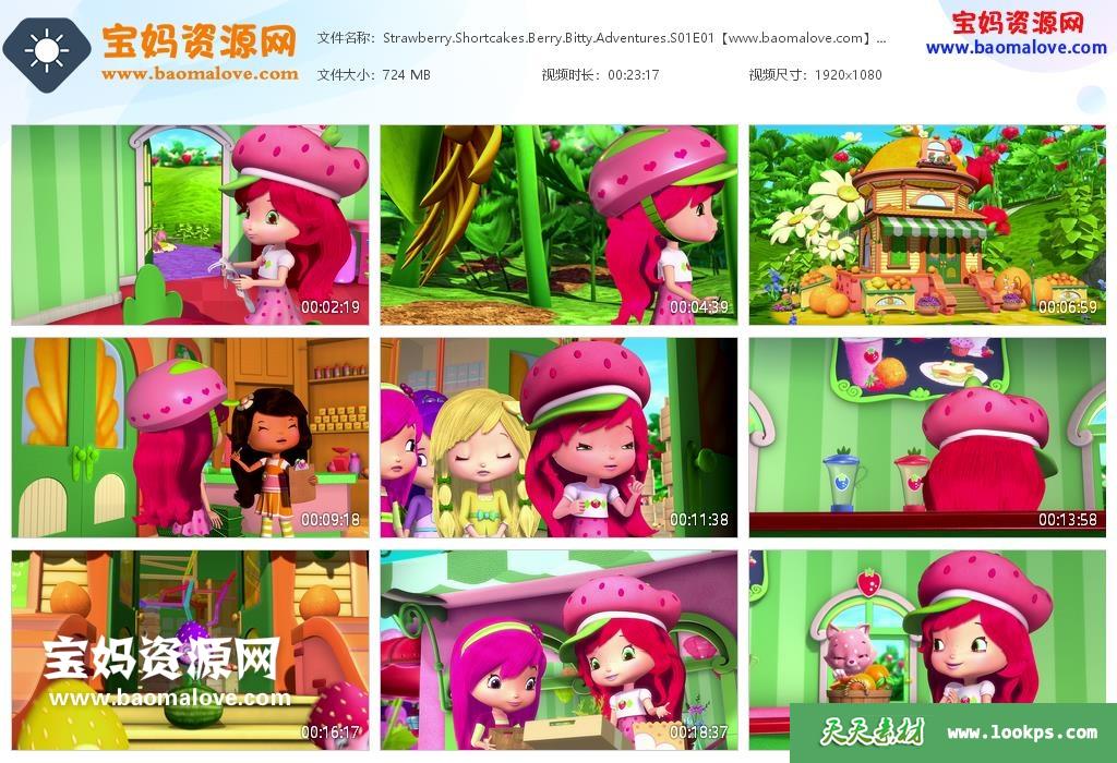 天天资源网收录的动画片《Strawberry Shortcake’s Berry Bitty Adventures》草莓甜心:草莓乐园英文版 第一季 全部13集,英语发音,内置英文字幕(可以下载后使用播放器设置字幕字体大小颜色或者切换关闭字幕);每集大小约725M,资源总大小9.19G,单集播放时长约23分钟,1080P高清MKV格式,可以在电视机或电脑、平板、IPAD、早教机、手机等各种设备播放,提供百度网盘下载。