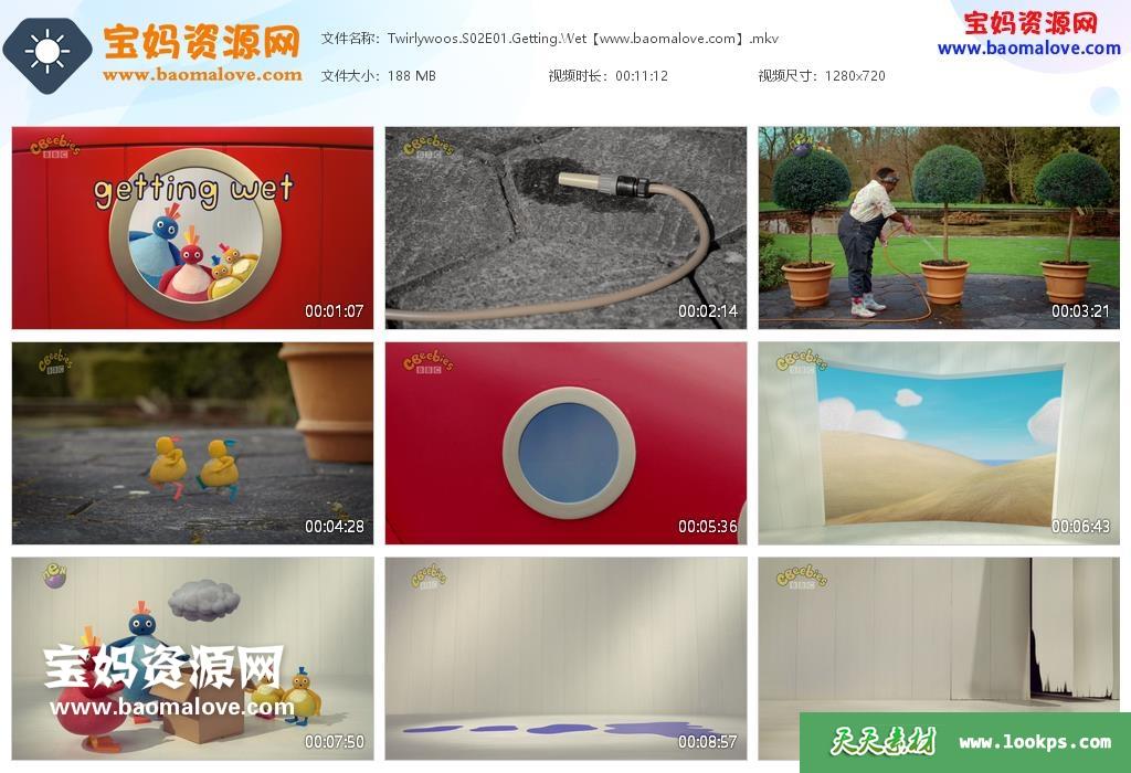 天天资源网收录的动画片《Twirlywoos》趣趣知知鸟英文版 第一二三四季,共4季,全部100集,英语发音,内置英文字幕(可以下载后使用播放器设置字幕字体大小颜色或者切换关闭字幕);每集大小约185M,资源总大小18.6G,单集播放时长约11分钟,720P高清MKV格式,可以在电视机或电脑、平板、IPAD、早教机、手机等各种设备播放,提供百度网盘下载。