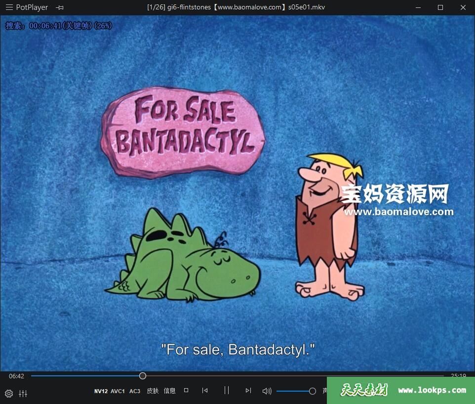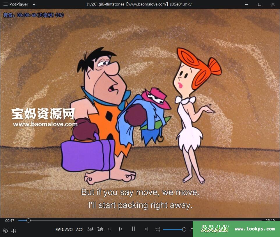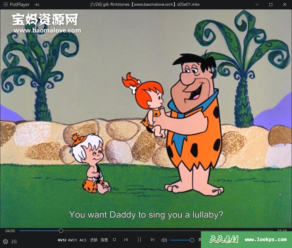 天天资源网收录的动画片《The Flintstones》摩登原始人英文版 第五季 全部26集,英语发音,内置英文字幕(内置多国语言字幕,如法文,荷兰文等,可以下载后使用播放器设置字幕字体大小颜色或者切换关闭字幕);每集大小约610M,资源总大小16.6G,单集播放时长约26分钟,720P高清MKV格式,可以在电视机或电脑、平板、IPAD、早教机、手机等各种设备播放,提供百度网盘下载。