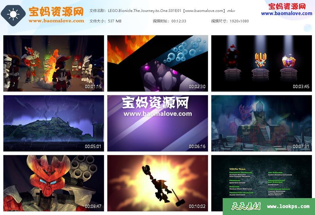 天天资源网收录的动画片《Lego Bionicle: The Journey to One》LEGO Bionicle:追寻唯一英文版 第1-2季,全集5集,英语发音,内置英文字幕(内置多国语言字幕,西班牙文,法文,中文,等多国语言字幕…可以下载后使用播放器选择字幕或者关闭字幕);每集大小1G,资源总大小5.14G,单集播放时长约12分钟,1080P高清MKV格式,可以在电视机或电脑、平板、IPAD、早教机、手机等各种设备播放,提供百度云网盘下载。