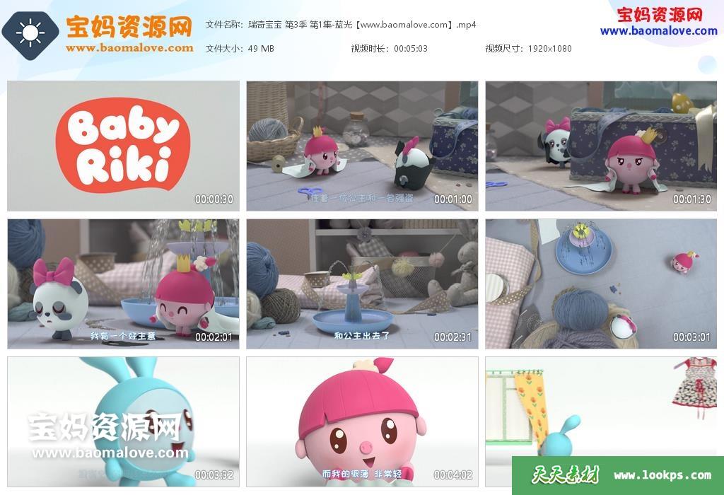 天天资源网收录的动画片《BabyRiki》瑞奇宝宝英文版 第三季,全部52集,英语发音,内置中文字幕;每集大小约50M,总大小2.5G,单集播放时长约5分钟,1080P高清MP4格式,可以在电视机或电脑、平板、IPAD、早教机、手机等各种设备播放,提供百度云网盘下载。