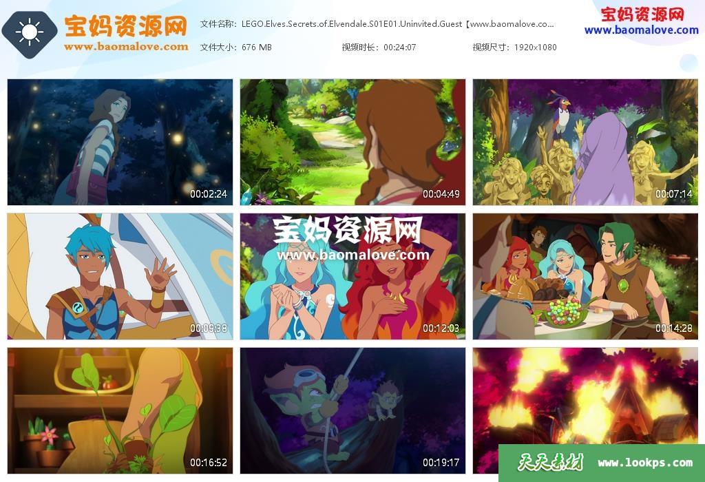 天天资源网收录的《LEGO Elves: Secrets of Elvendale》乐高精灵:精灵谷的秘密英文版 第一季全集8集,英语发音,内置英文字幕(内置多国语言字幕,西班牙文,法文,简体中文,繁体中文…可以下载后使用播放器选择字幕或者关闭字幕);每集大小约670M,总大小5.53G,单集播放时长约24分钟,1080P高清MKV格式,可以在电视机或电脑、平板、IPAD、早教机、手机等各种设备播放,提供百度云网盘下载。