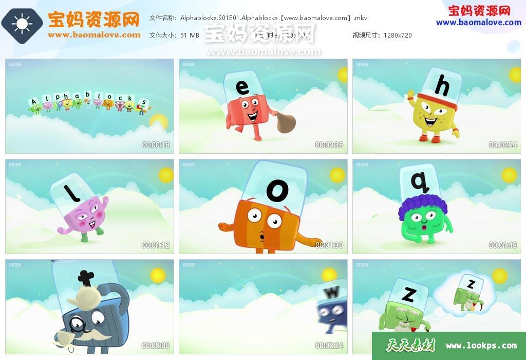 天天资源网收录的动画片《Alphablocks》字母积木英文版 第一季 全集26集,英语发音,内置英文字幕(可以下载后使用播放器选择设置字幕或者关闭字幕);每集大小50M,资源总大小1.32G,单集播放时长约3分钟,720P高清MKV格式,可以在电视机或电脑、平板、IPAD、早教机、手机等各种设备播放,提供百度云网盘下载。