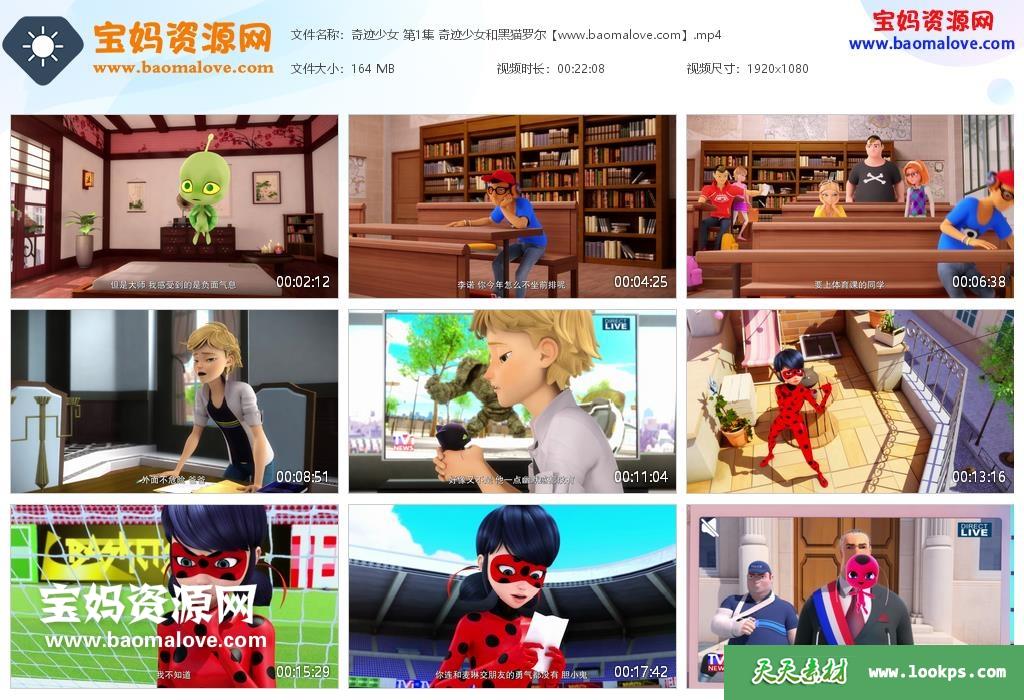 天天资源网收录的动画片《奇迹少女/瓢虫雷迪》Miraculous: Tales of Ladybug & Cat Noi中文版 第一季,全部26集,国语发音,无字幕;每集大小约165M,总大小4.14G,单集播放时长约22分钟,1080P高清MP4格式,可以在电视机或电脑、平板、IPAD、早教机、手机等各种设备播放,提供百度云网盘下载。