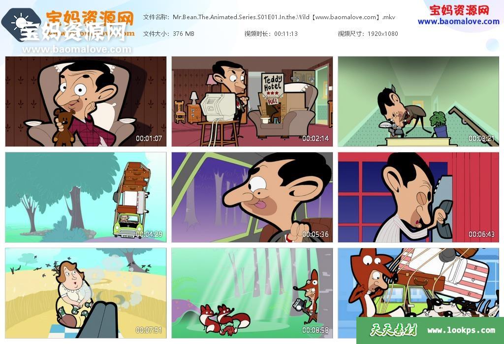 天天资源网收录的动画片《Mr. Bean: The Animated Series》憨豆先生卡通版英文版 第一季 全集52集,英语发音,内置英文字幕(可以下载后使用播放器选择设置字幕或者关闭字幕);每集大小280M,资源总大小15.3G,单集播放时长约12分钟,1080P高清MKV格式,可以在电视机或电脑、平板、IPAD、早教机、手机等各种设备播放,提供百度云网盘下载。
