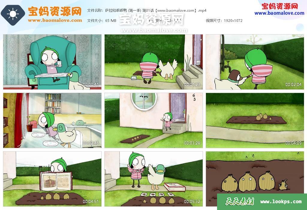 天天资源网收录的动画片《莎拉与乖乖鸭》Sarah and Duck中文版 第一季,全部40集,国语发音,无字幕;每集大小约65M,总大小2.43G,单集播放时长约7分钟,1080P高清MP4格式,可以在电视机或电脑、平板、IPAD、早教机、手机等各种设备播放,提供百度云网盘下载。