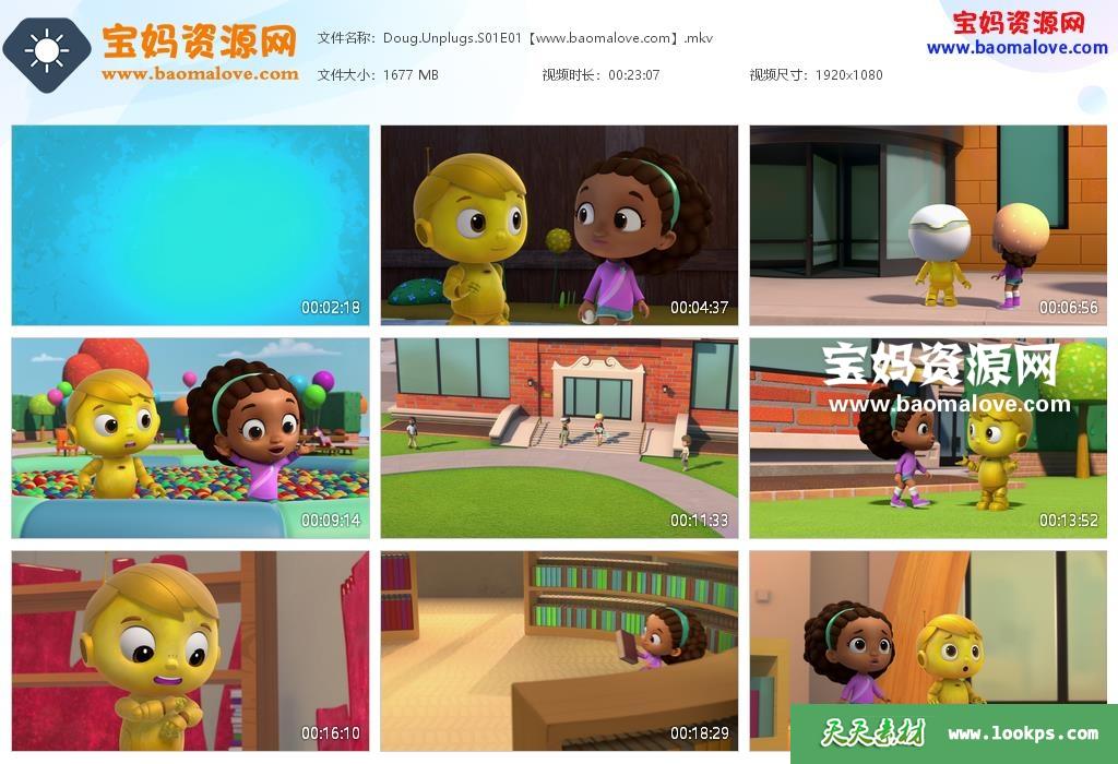天天资源网收录的动画片《Doug Unplugs》道格看世界英文版 第一季,全部26集,英语发音,内置英文字幕(可以下载后使用播放器选择设置字幕或者关闭字幕);每集大小800M,资源总大小21.2G,单集播放时长约11分钟,1080P高清MKV格式,可以在电视机或电脑、平板、IPAD、早教机、手机等各种设备播放,提供百度云网盘下载。
