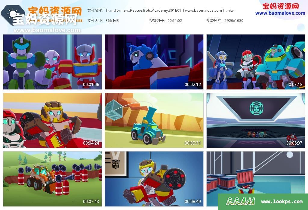 天天资源网收录的动画片《Transformers Rescue Bots Academy》救援机器人学院英文版 第一季,全集26集,英语发音,内置英文字幕(可以下载后使用播放器选择设置字幕或者关闭字幕);每集大小360M,资源总大小9.89G,单集播放时长约11分钟,1080P高清MKV格式,可以在电视机或电脑、平板、IPAD、早教机、手机等各种设备播放,提供百度云网盘下载。