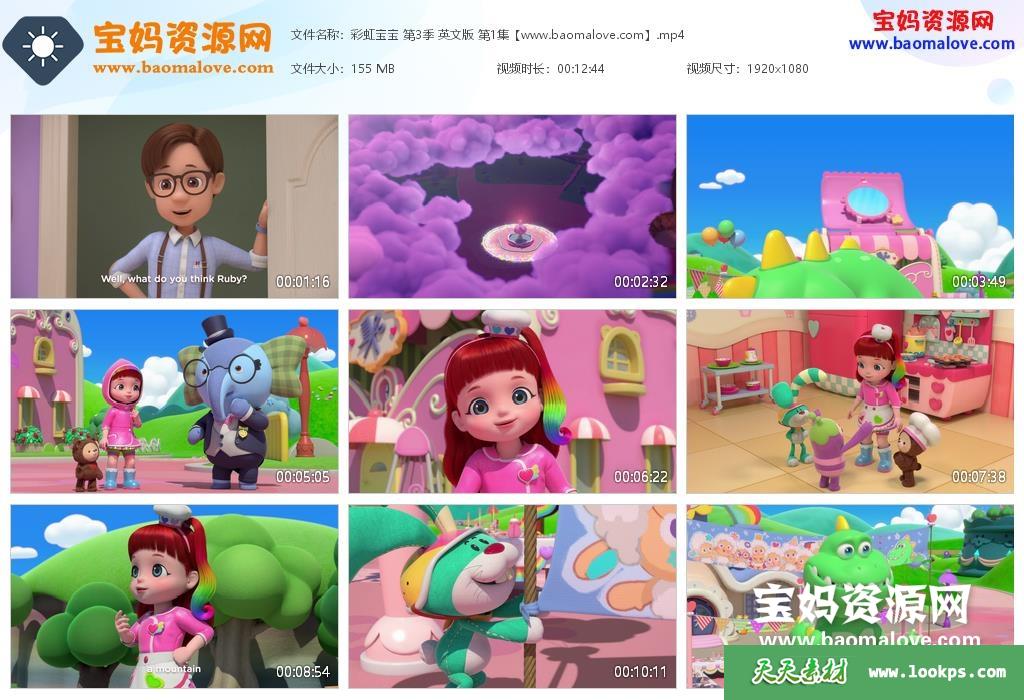 天天资源网收录的动画片《Rainbow Ruby》彩虹宝宝英文版 第三季,全集26集,英语发音,内置英文字幕;每集大小约160M,资源总大小4.79G,单集播放时长约12分钟,1080P高清MP4格式,可以在电视机或电脑、平板、IPAD、早教机、手机等各种设备播放,提供百度云网盘下载。