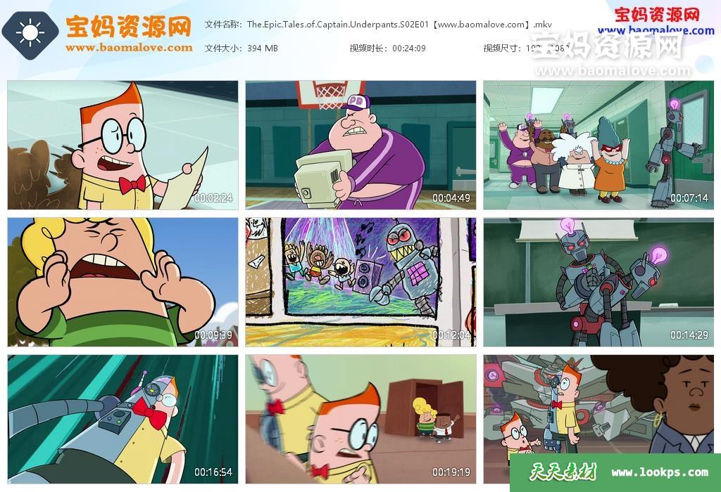 天天资源网收录的动画片《The Epic Tales of Captain Underpants》内裤超人历险记英文版 第二季 全部13集,英语发音,内置英文字幕(内置多国语言字幕,如丹麦文,德文,希腊文,西班牙文,芬兰文,意大利文,法文,挪威文,荷兰文,波兰文,葡萄牙文,瑞典文,土耳其文等,可以下载后使用播放器设置字幕字体大小颜色或者关闭字幕);每集大小约700M,资源总大小13.1G,单集播放时长约24分钟,1080P高清MKV格式,可以在电视机或电脑、平板、IPAD、早教机、手机等各种设备播放,提供百度网盘下载。