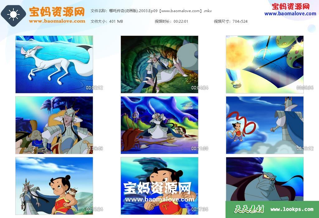 天天资源网收录的动画片《哪吒传奇》The Legend of Nezha中文版,全部52集,国语发音,无字幕;每集大小约300M,总大小15.9G,单集播放时长约22分钟,524P高清MKV格式,可以在电视机或电脑、平板、IPAD、早教机、手机等各种设备播放,提供百度云网盘下载。