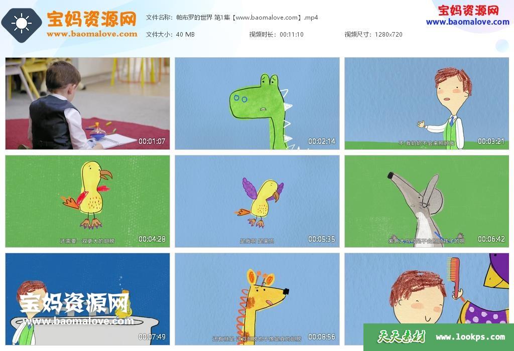 天天资源网收录的动画片《帕布罗的世界》Pablo中文版 第一季 ,全部52集,国语发音,中文字幕;每集大小约255M,总大小2.46G,单集播放时长约11分钟,720P高清MP4格式,可以在电视机或电脑、平板、IPAD、早教机、手机等各种设备播放,提供百度云网盘下载。