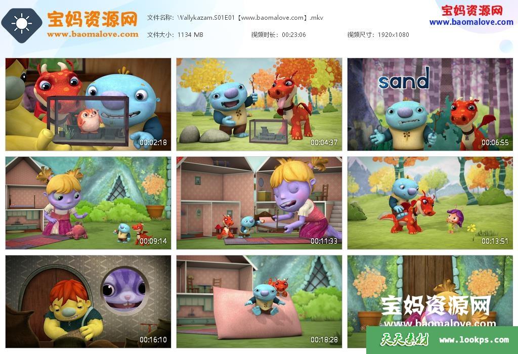 天天资源网收录的动画片《Wallykazam!》沃利的单词魔法英文版 第一季,全部26集,英语发音,内置英文字幕(可以下载后使用播放器选择设置字幕或者关闭字幕);每集大小约1G,资源总大小25.8G,单集播放时长约23分钟,1080P高清MKV格式,可以在电视机或电脑、平板、IPAD、早教机、手机等各种设备播放,提供百度云网盘下载。