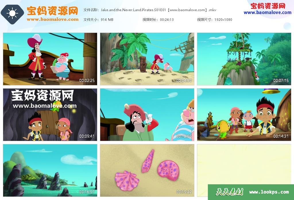 天天资源网收录的动画片《Jake and the Never Land Pirates》杰克与梦幻岛海盗英文版 第一季,全部25集,英语发音,内置英文字幕(可以下载后使用播放器选择设置字幕或者关闭字幕);每集大小约900M,资源总大小23G,单集播放时长约24分钟,1080P高清MKV格式,可以在电视机或电脑、平板、IPAD、早教机、手机等各种设备播放,提供百度云网盘下载。