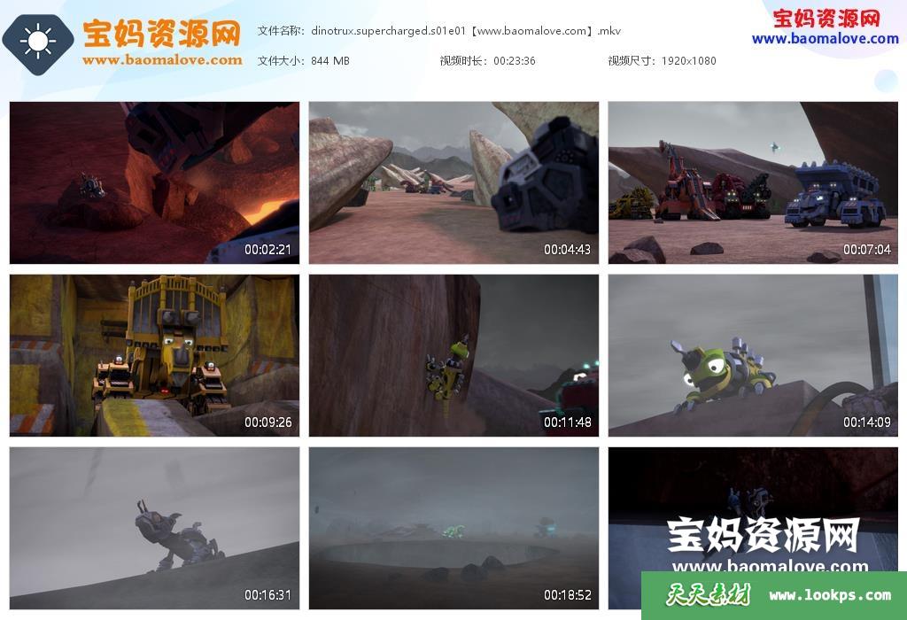 天天资源网收录的动画片《Dinotrux Supercharged》恐龙机械:动能强化英文版 第一季,全部6集,英语发音,内置英文字幕(内置多国语言字幕,如荷兰,法文,西班牙文,可以下载后使用播放器设置字幕字体大小颜色或者关闭字幕);每集大小约850M,资源总大小5.53G,单集播放时长约23分钟,1080P高清MKV格式,可以在电视机或电脑、平板、IPAD、早教机、手机等各种设备播放,提供百度网盘下载。