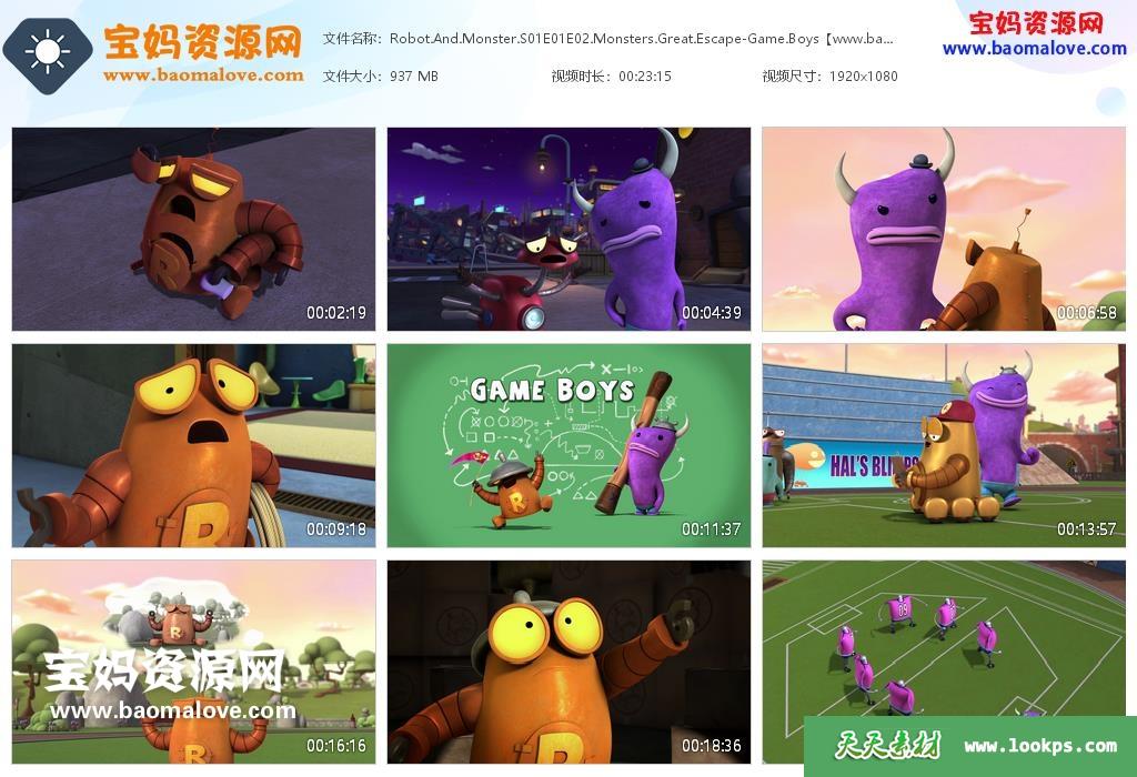 天天资源网收录的动画片《Robot And Monster》罗巴与紫怪怪英文版 第一季,全部50集,英语发音,内置英文字幕(可以下载后使用播放器选择设置字幕或者关闭字幕);每集大小约450M,资源总大小24.9G,单集播放时长约11分钟,1080P高清MKV格式,可以在电视机或电脑、平板、IPAD、早教机、手机等各种设备播放,提供百度云网盘下载。